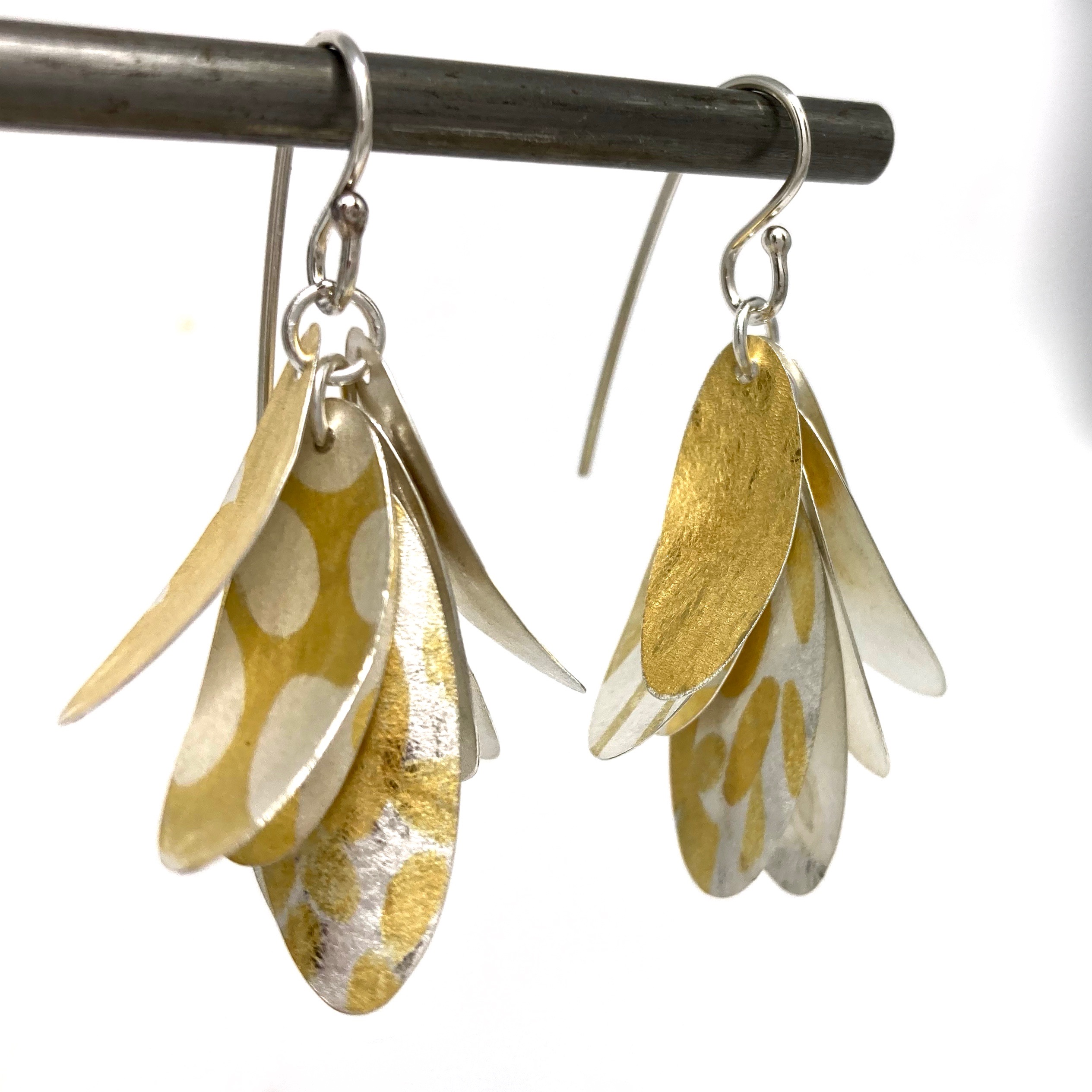 Dans ce cours, vous pourrez créer jusqu’à trois pendentifs ou deux paires de boucles d’oreilles (à votre choix). Vos bijoux seront créés en argent sterling et ornés de motifs découpés dans une fine feuille d’or 24K. Au cours de l’atelier, Karine Rodrigue vous accompagnera au cours de toutes les étapes, de la conception à la fabrication et la finition de vos projets. Aucun préalable n’est requis. Les matériaux seront fournis et vous pourrez acheter des motifs prédécoupés par Karine Rodrigue afin de continuer vos expérimentations avec le Keum-Boo.